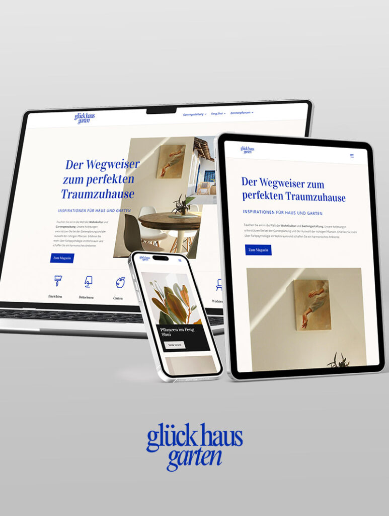 Webdesign für einen stylischen Haus- & Gartenblog, der Inspiration und Praxiswissen verbindet. Klare Struktur, moderne Typografie und ein flexibles Layout-System für Trends, Tipps und saisonale Inhalte – damit neue Beiträge schnell eingepflegt werden können und der Look konsistent bleibt.